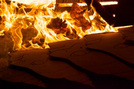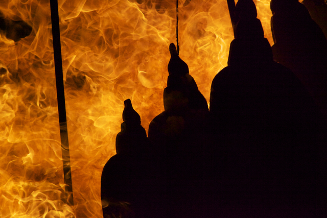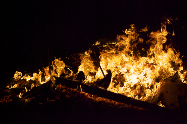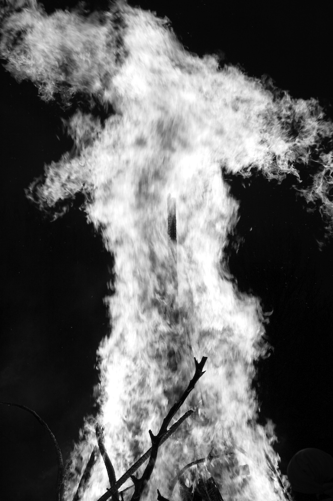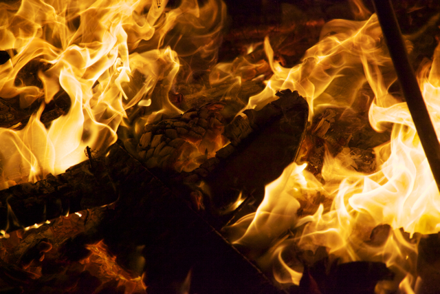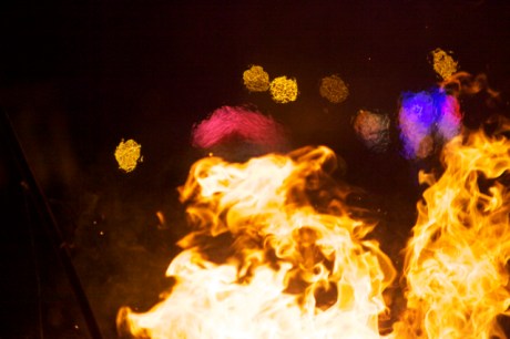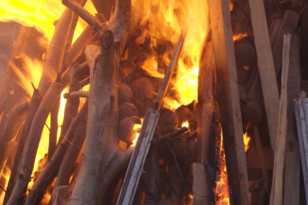 As a child I was taken to celebrate various festivals some of which included communal bonfires. In particular the festival of Holi was particularly interesting because as soon as we arrived I was enveloped by a sea of people engaged in cacophony of rights and rituals. The festival was particularly inclusive, as I would see many of my non-Hindu friends at the bonfire (many of which would come for the Prashad- which to them was free food). The Prashad (blessed food) at Holi was different, instead of the normal sweetmeats devoured at other festivals people here given popcorn – which to me spelt party food. The whole festival was more like lots of private parties that had converged in one place. Many of the people walked clockwise around the bonfire dripping small amounts of water from copper vessels or chanting mantras with a tray or plateful’s of rice powdered colour beetle nuts and coconuts.