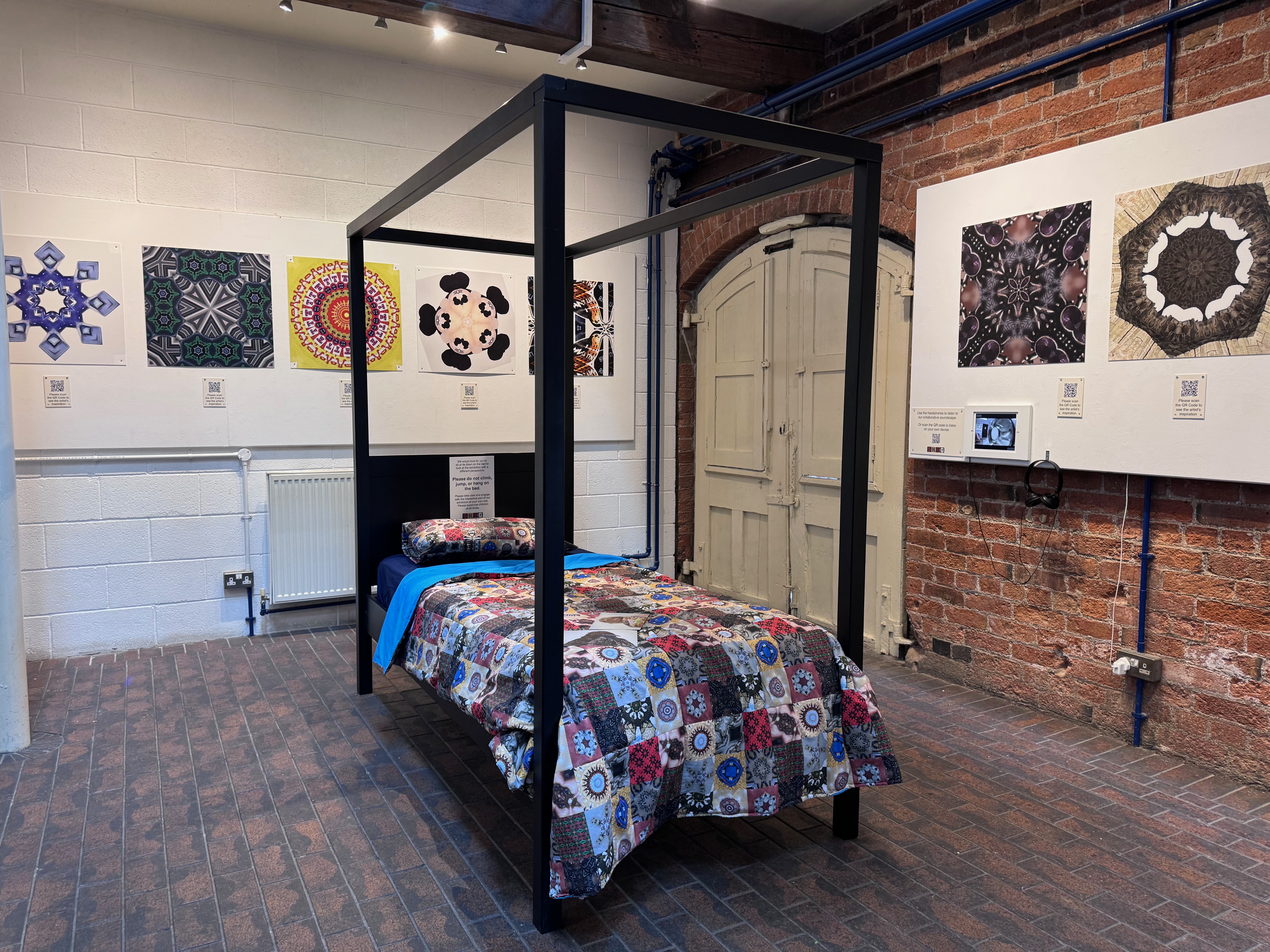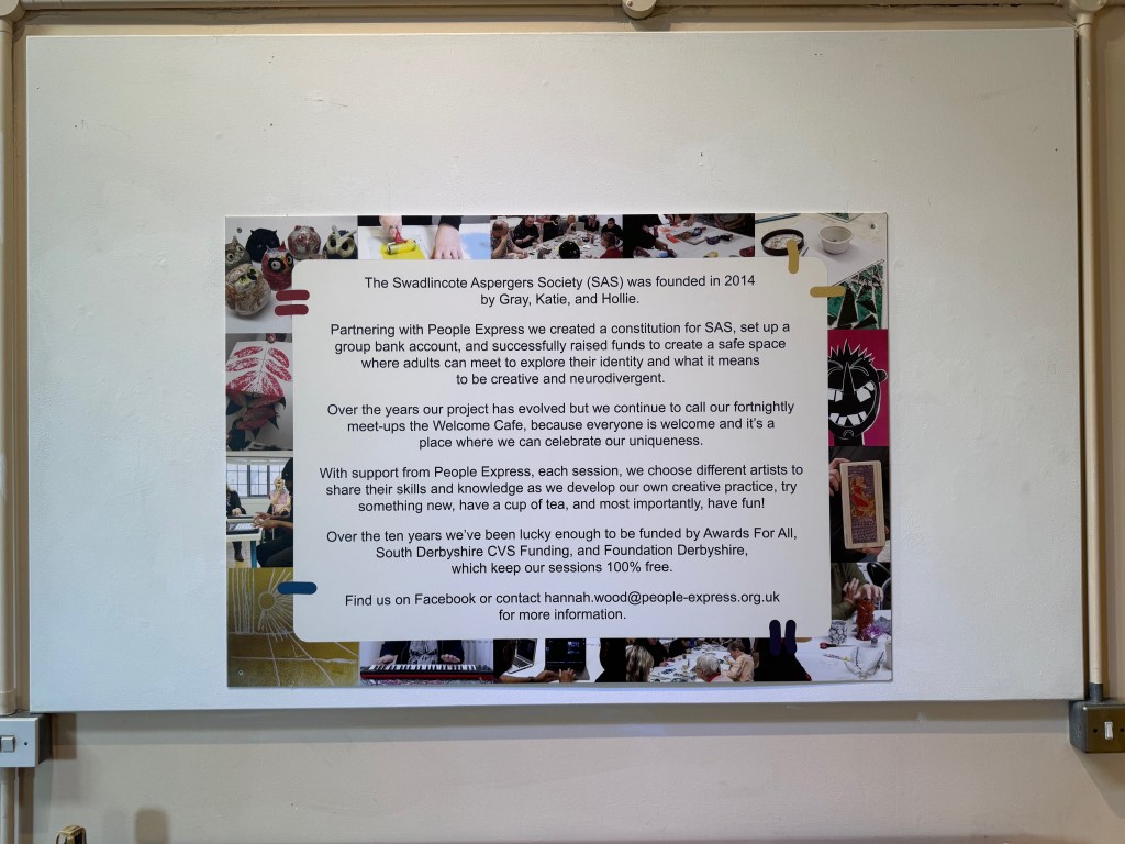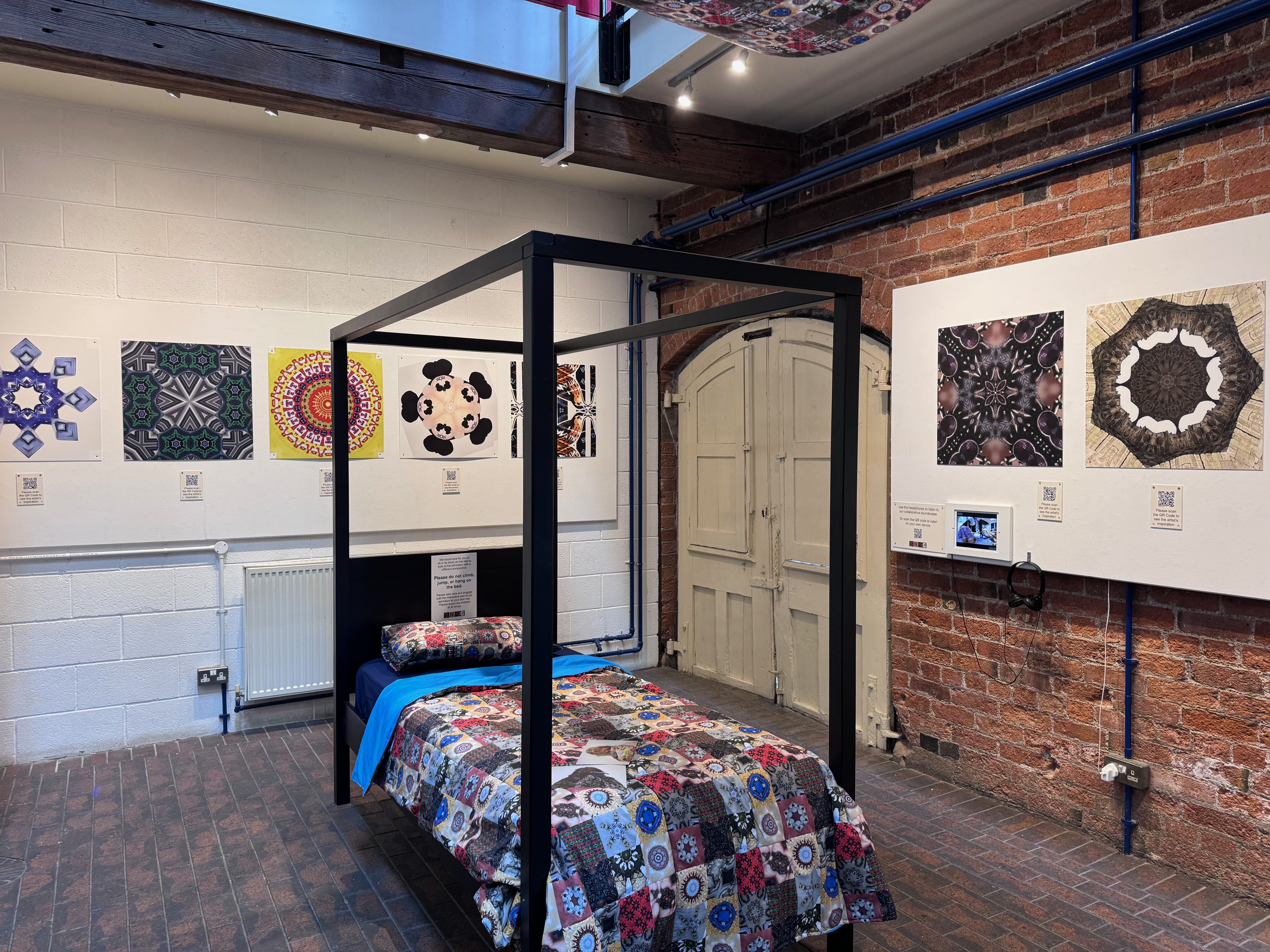 The artworks created through this process formed the basis of an immersive installation for an exhibition at the Brewhouse Arts Centre in Burton upon Trent. Designed collectively, the exhibition celebrated the group’s achievements while offering space for the public to encounter neurodivergent perspectives on rest, care, and safety. By shaping both the artworks and the environment in which they were shown, participants ensured that the exhibition reflected their voices, priorities, and creative autonomy.