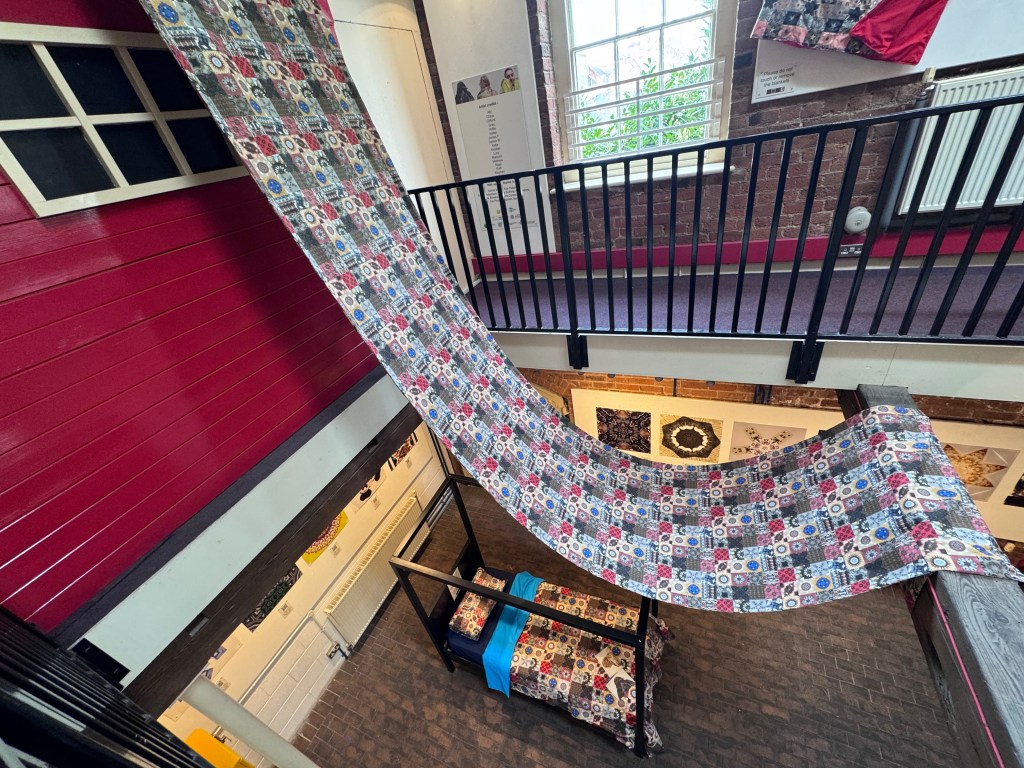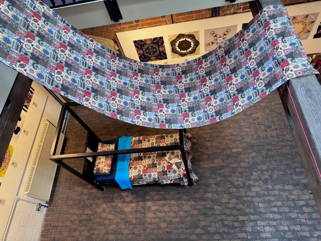 The SNUG project was built through a sustained, collaborative process with members of the Swadlincote Asperger’s Society. Over several months, participants worked closely with the lead artist to explore personal themes of identity, comfort, and sensory experience. Through conversation, photography, and creative experimentation, the group developed visual motifs drawn from their own interests and lived realities. These became bespoke fabrics, which the participants then helped transform into hand-crafted weighted quilts.