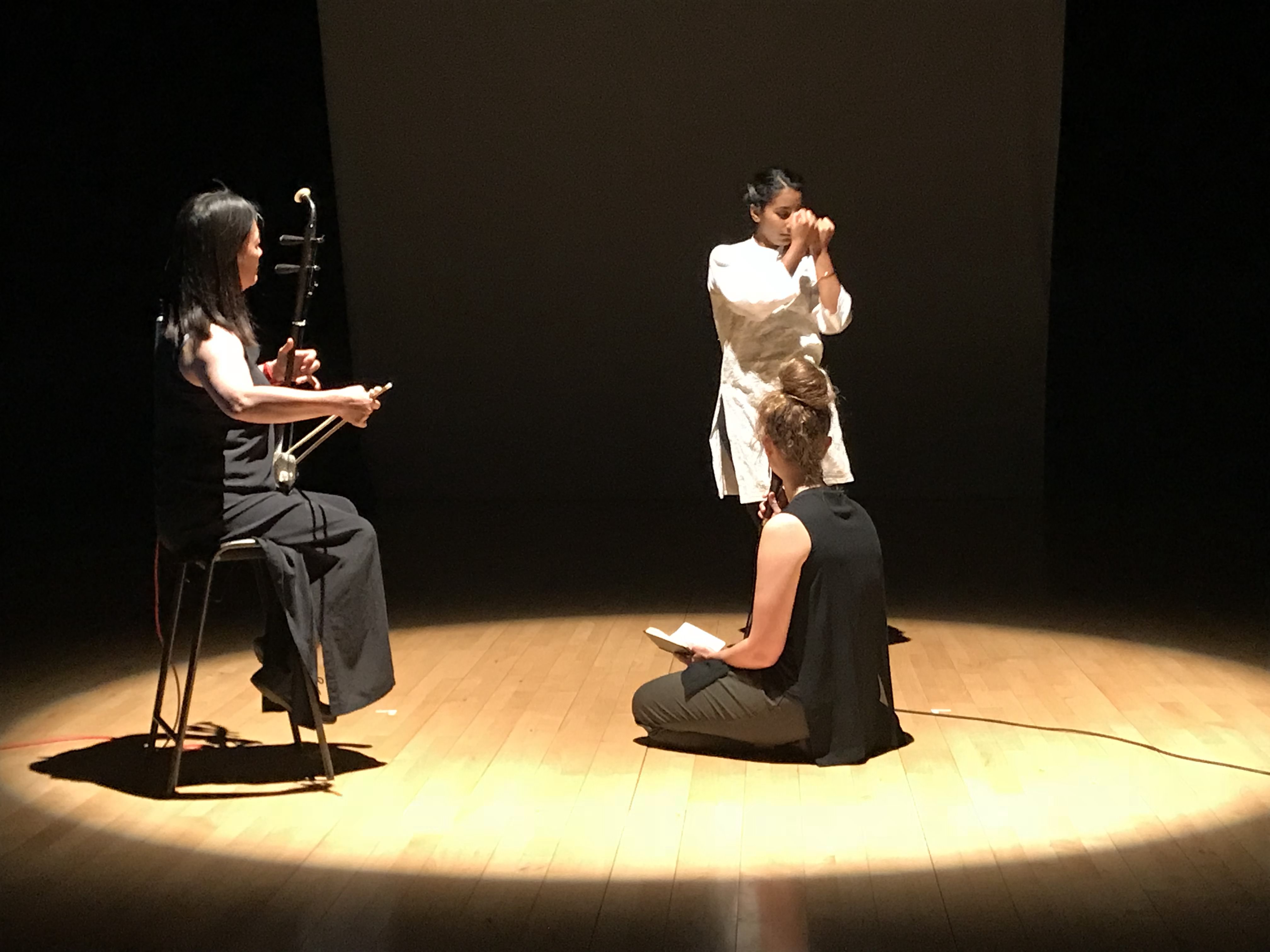 This interdisciplinary performance, connects music, spoken word and dance by mediating the forms through data and technology.