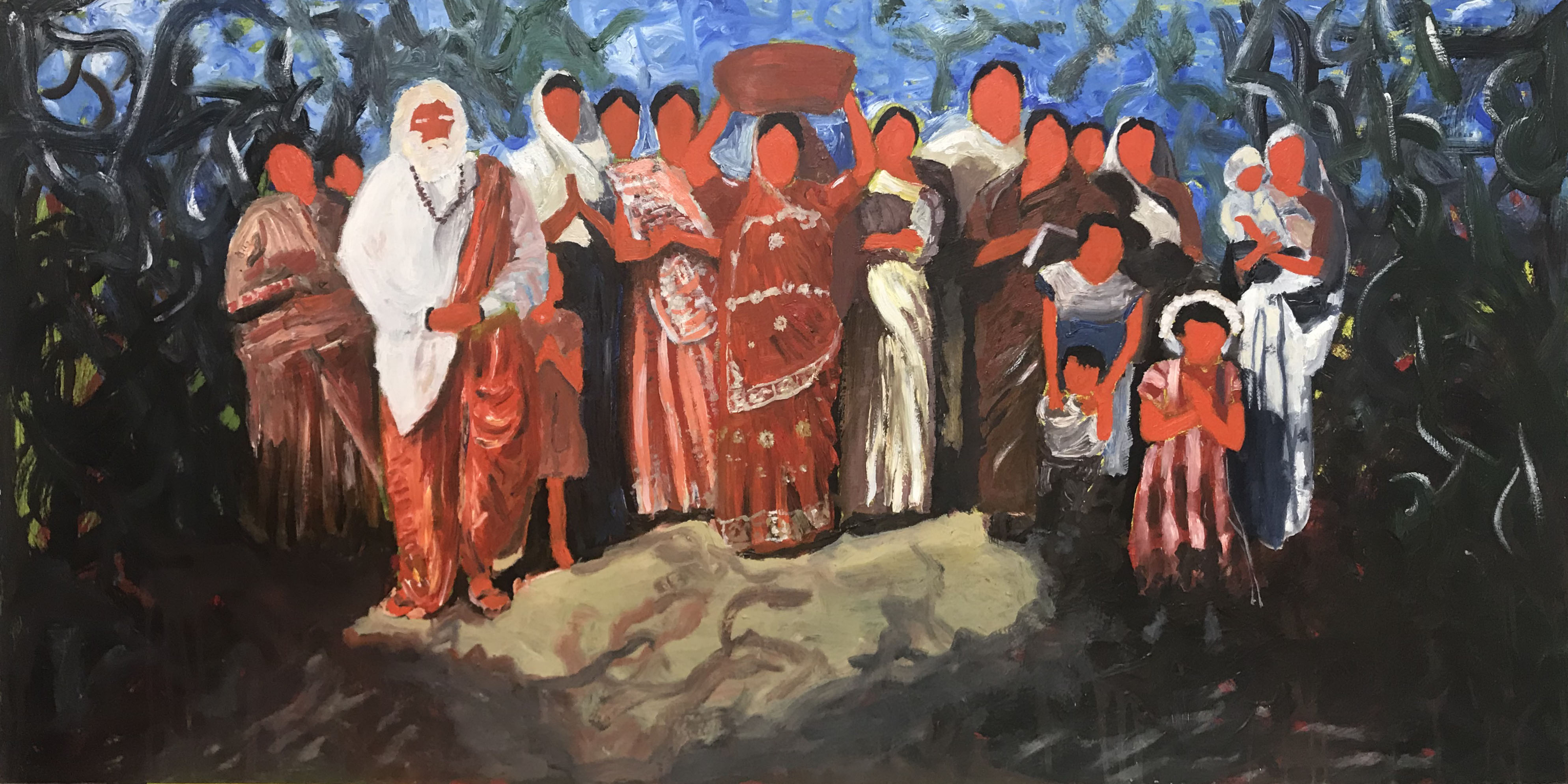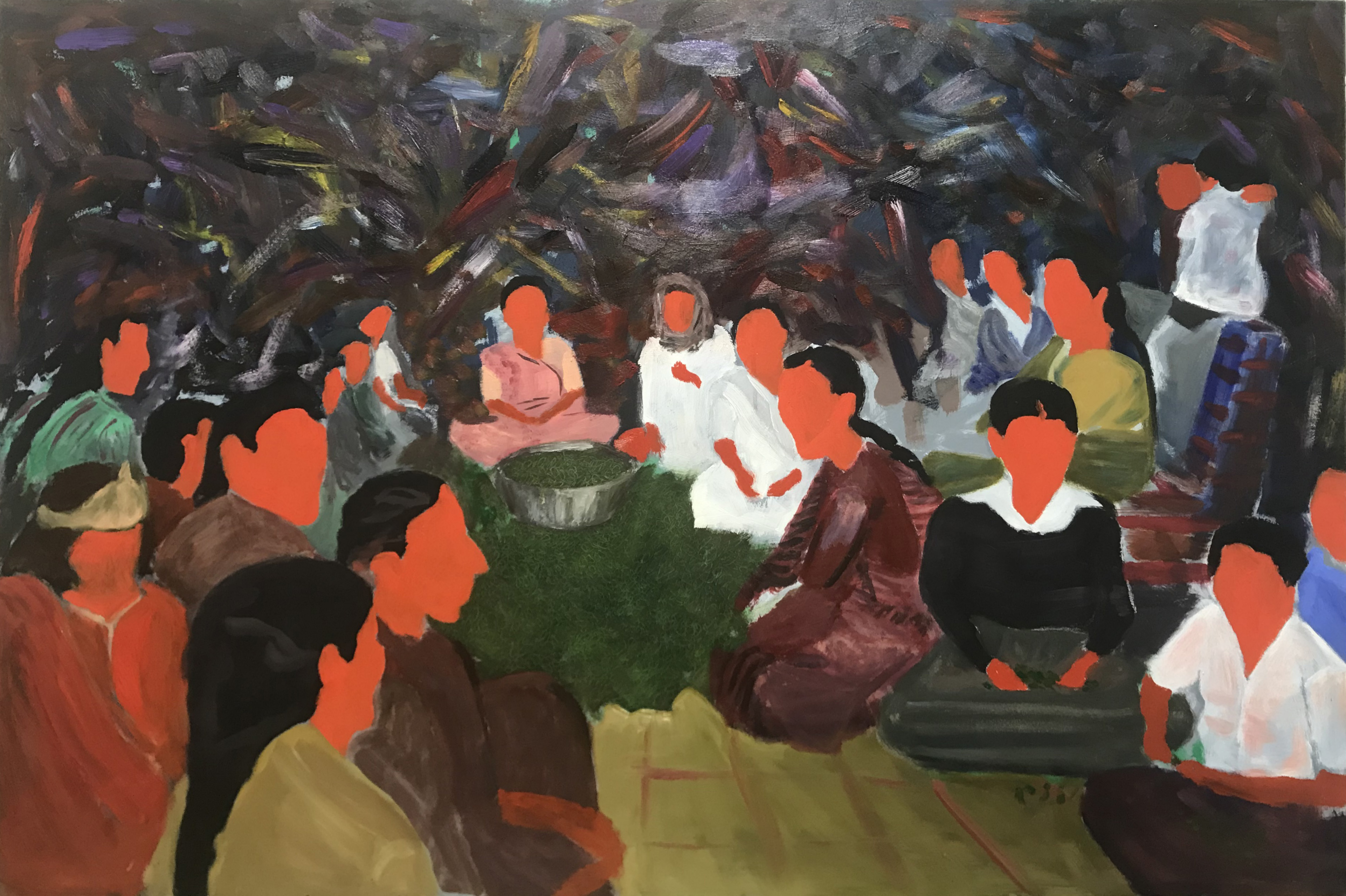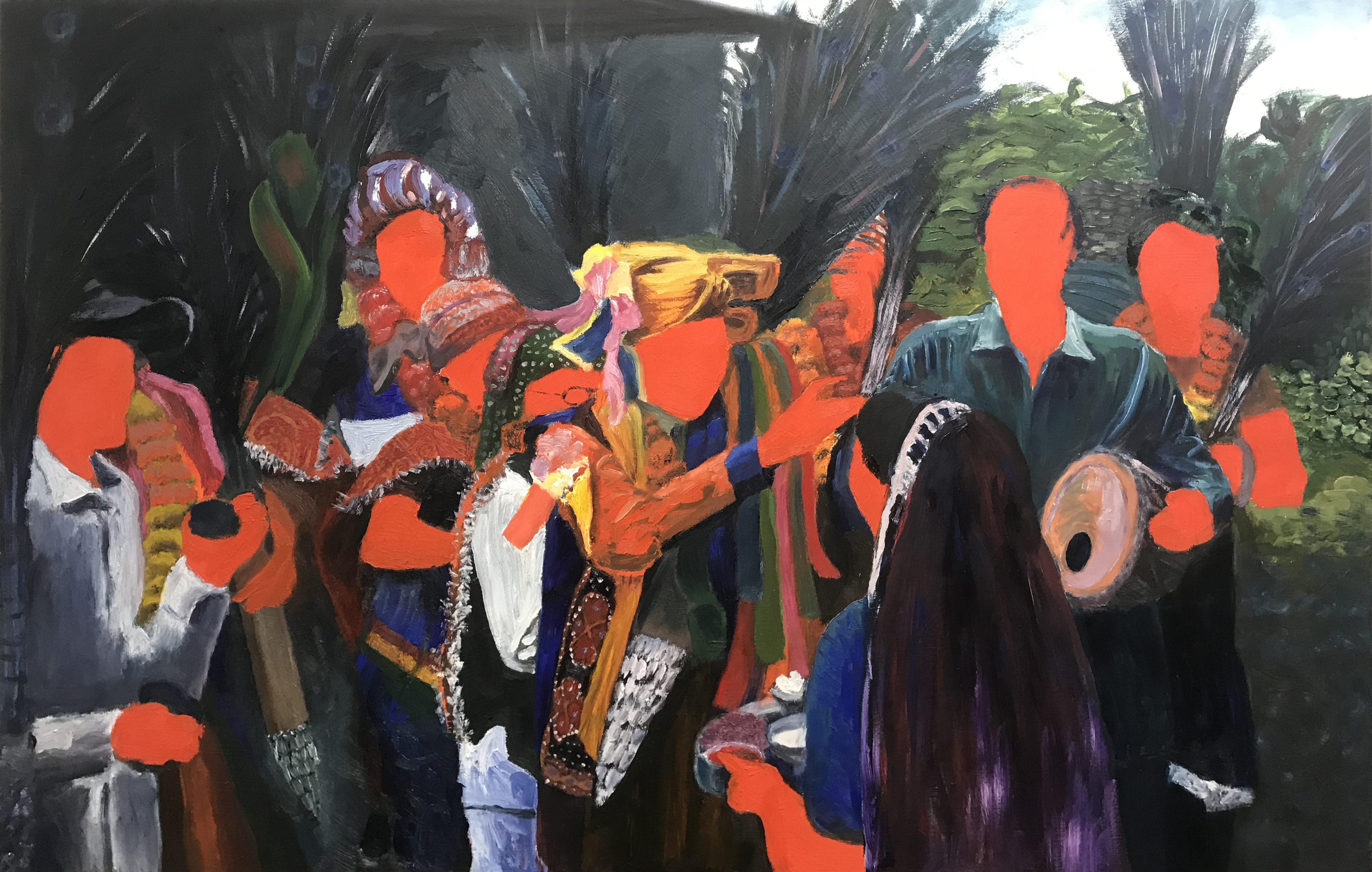 The paintings are dream like reinterpretations with jarring depth and vivid colours that spit details that wakes you in a cold sweat. In dreams you can recognise people but you don’t know why, because you couldn’t see their faces. You could recognise intangible values of their being such as the gait of their walk, their build and gestures, or the context of their existence.